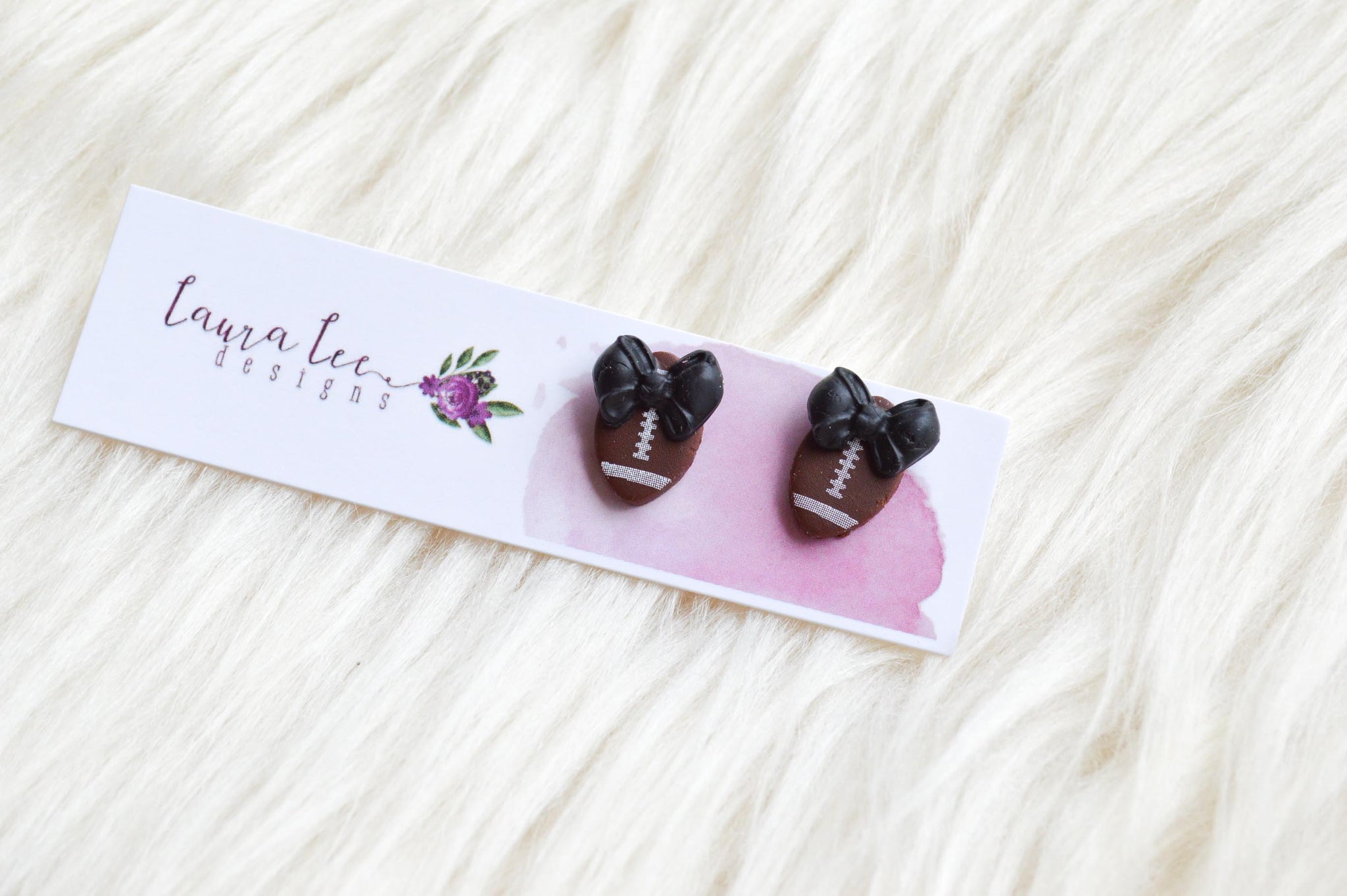 Clay Stud Earrings || Football with Bows || You Choose Bow Color || Made to Order