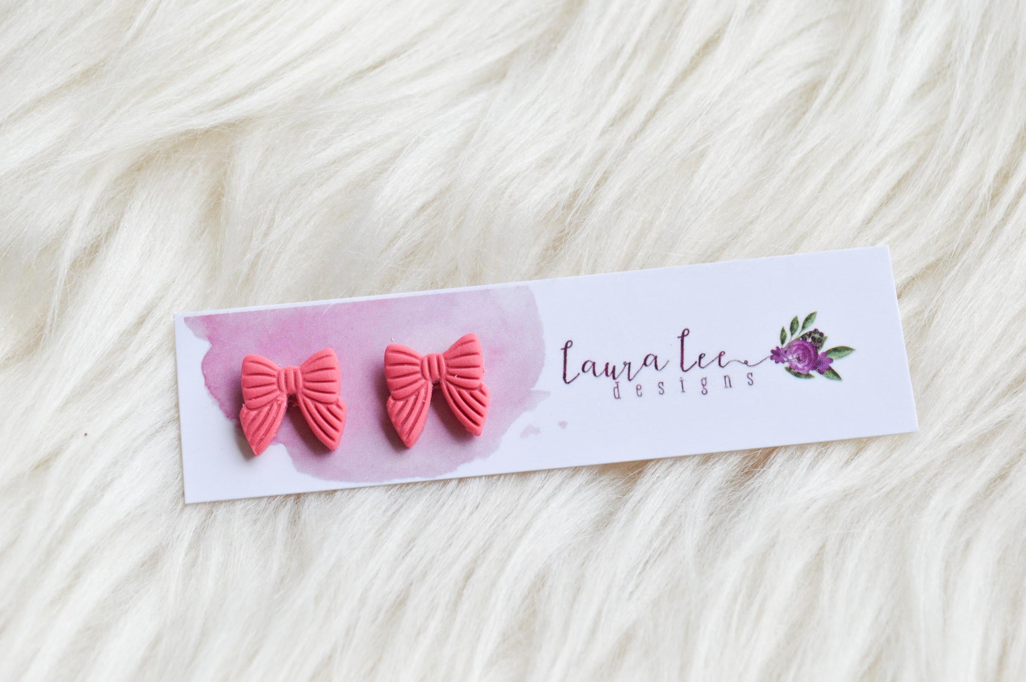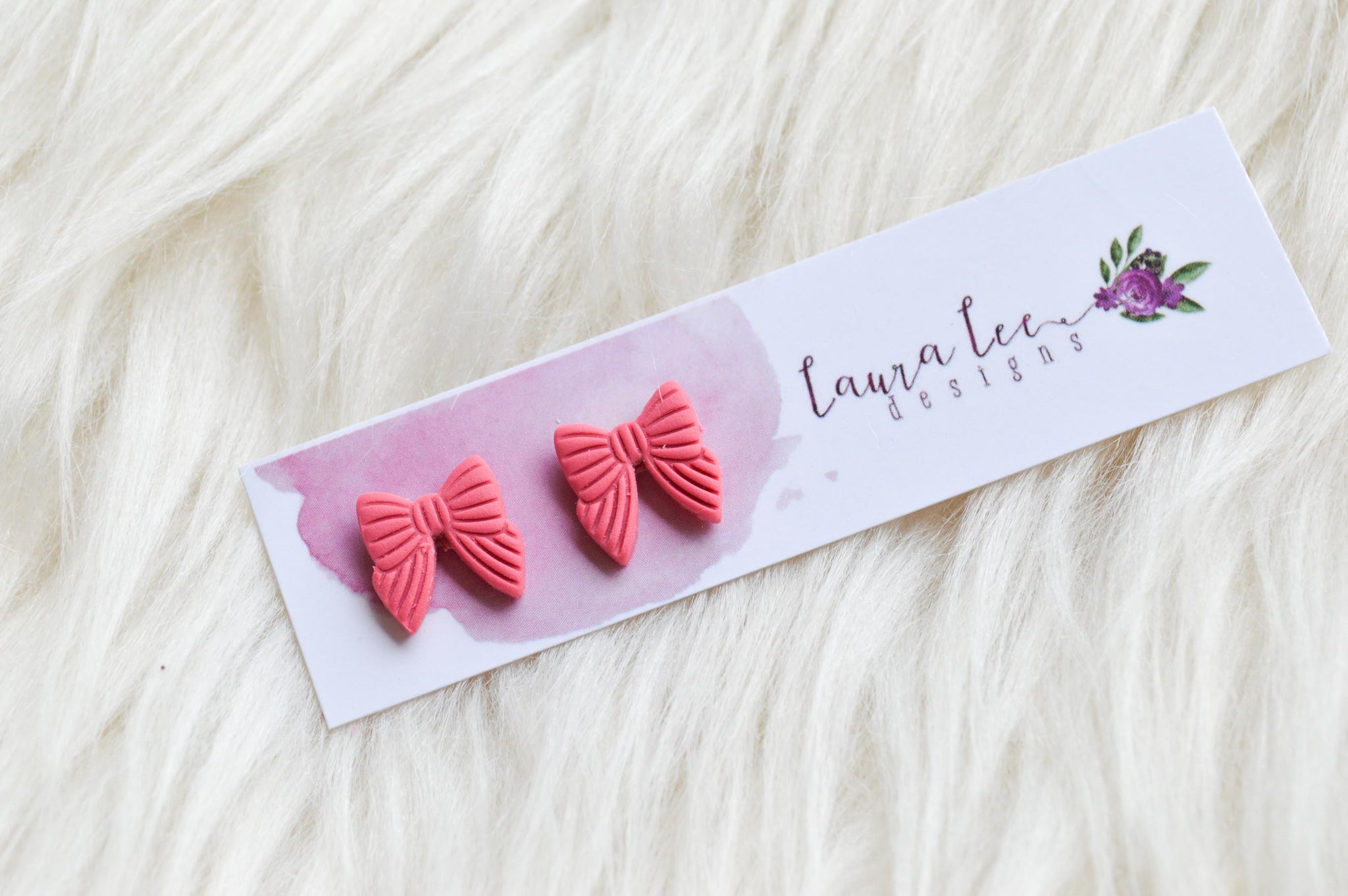 Bow Clay Stud Earrings || Coral || Made to Order